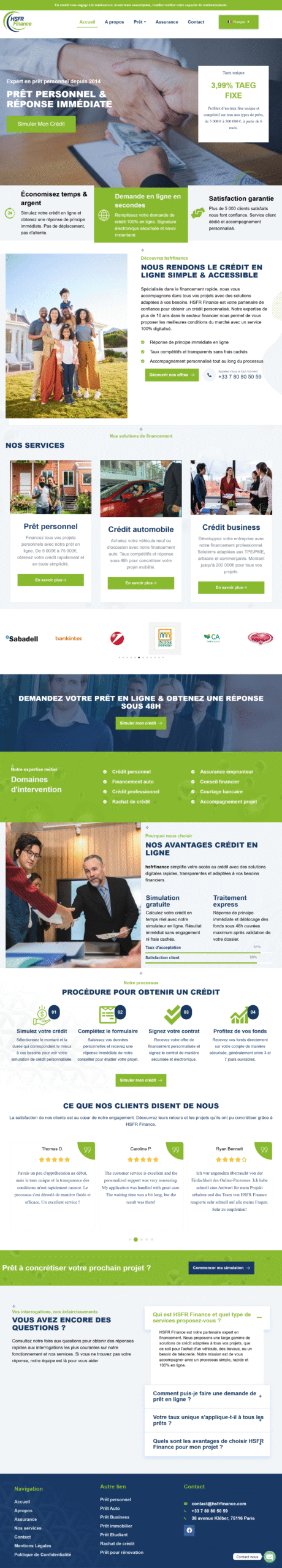 • Fonctionnalités principales : présentation de l’entreprise, informations de contact, témoignages clients, portfolio.